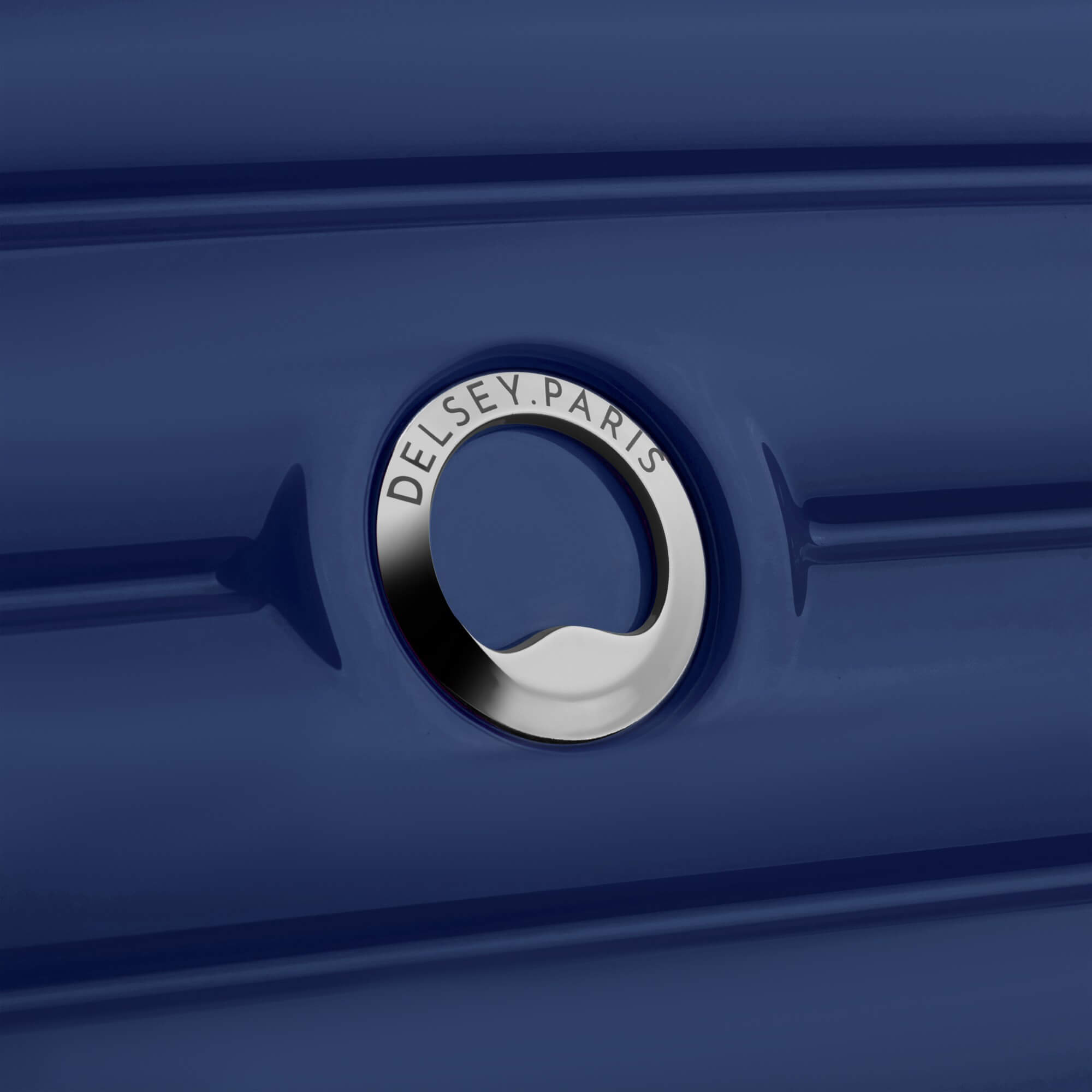 The Delsey Paris Shadow 5.0 trolley in navy blue combines style and safety, making it the ideal choice for fashion-conscious travelers.