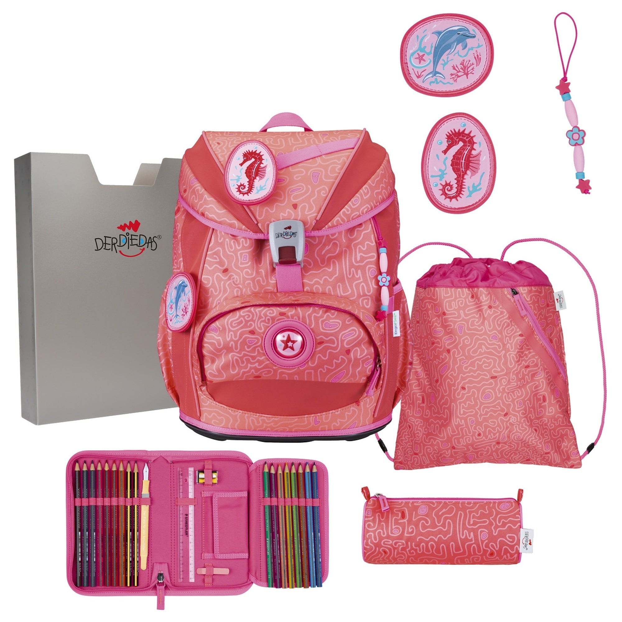 DerDieDas ErgoFlex Light Exklusiv Superflash - School Backpack Set 5tlg. 800g (Coral Reef)