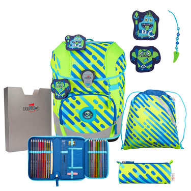 DerDieDas ErgoFlex Tiny Exklusiv Neon - School Backpack Set 5tlg. 900g (Monster)
