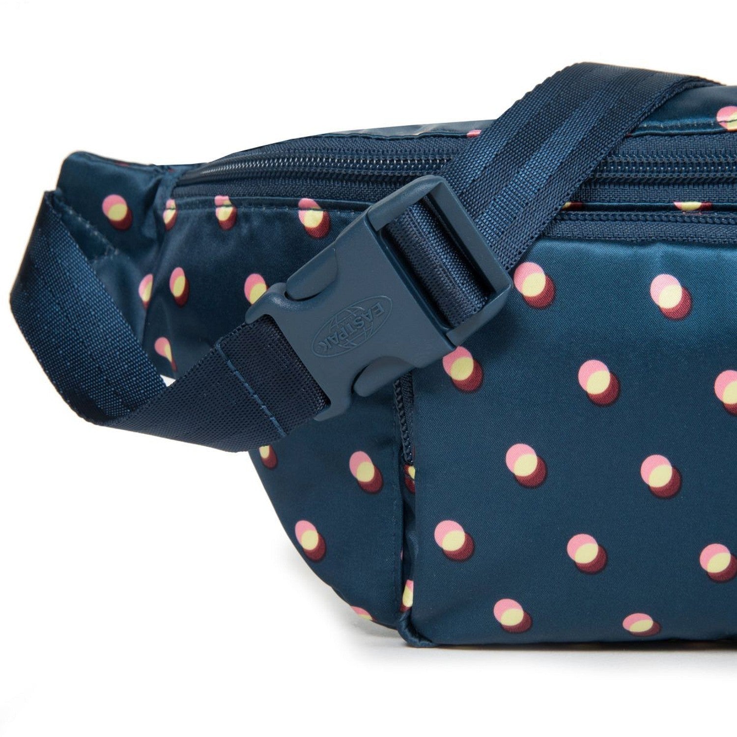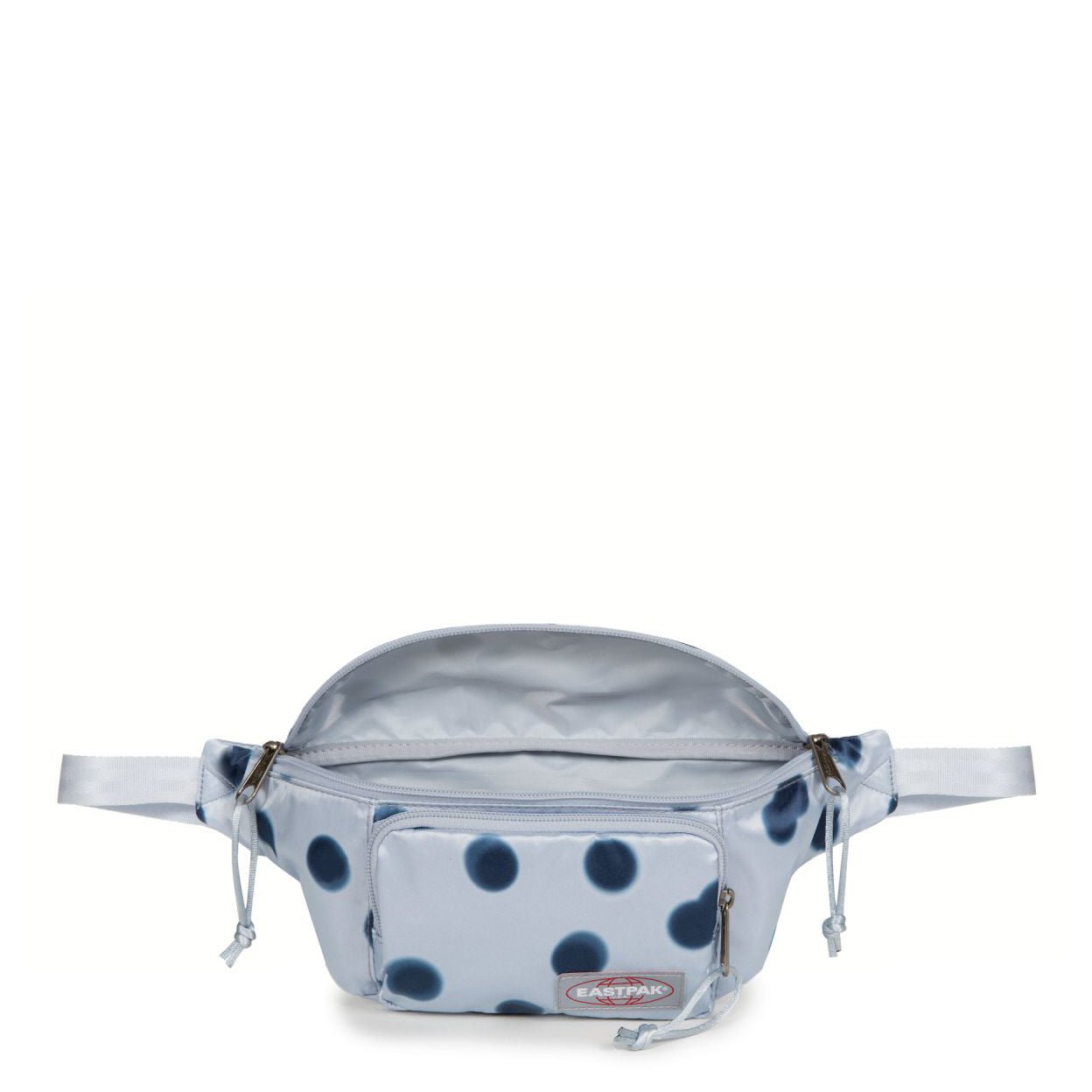 This fashionable belt bag from Eastpak combines practical design with a playful polka dot pattern in soft light blue and dark accents – ideal for everyday use and special occasions.