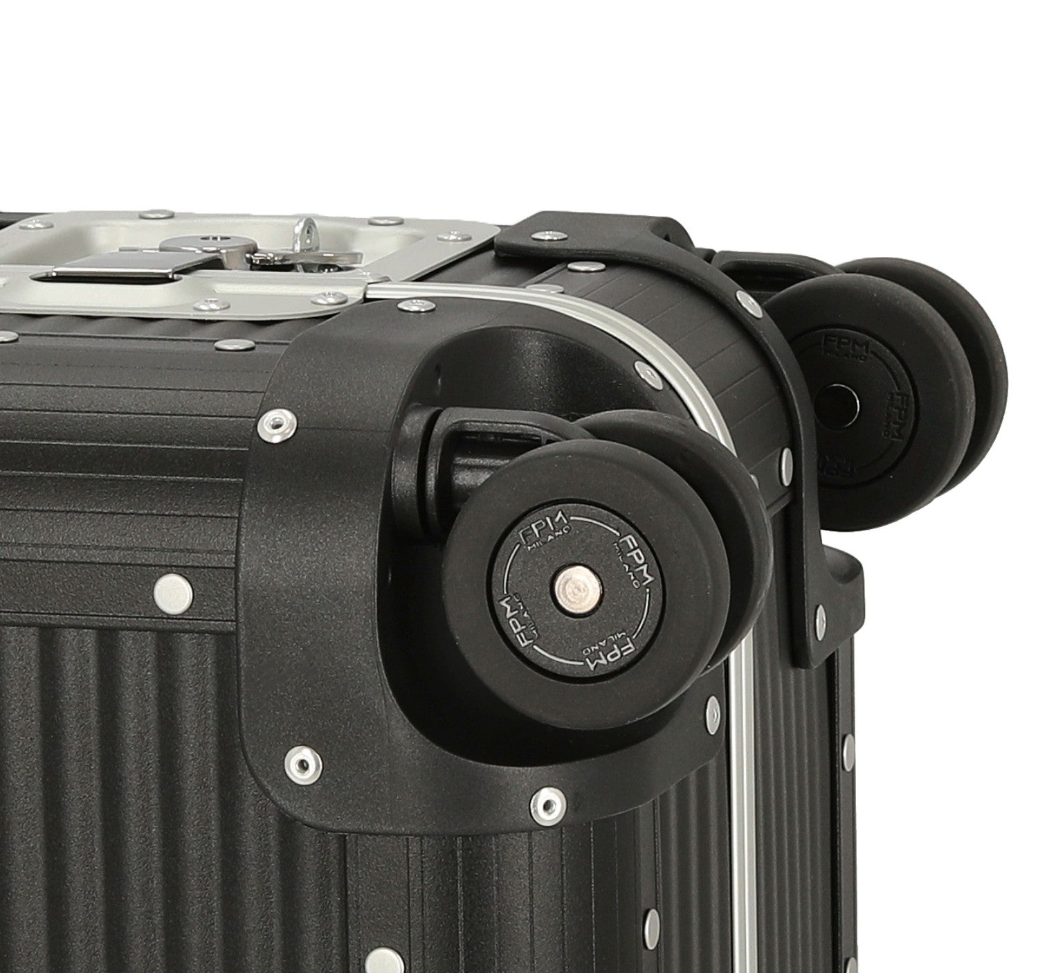 Discover the FPM Bank Spinner 55 M Aluminum in the elegant color Caviar Black. This stylish and functional cabin trolley is the result of innovative designs by Marc Sadler and is manufactured in Italy under the highest quality standards.