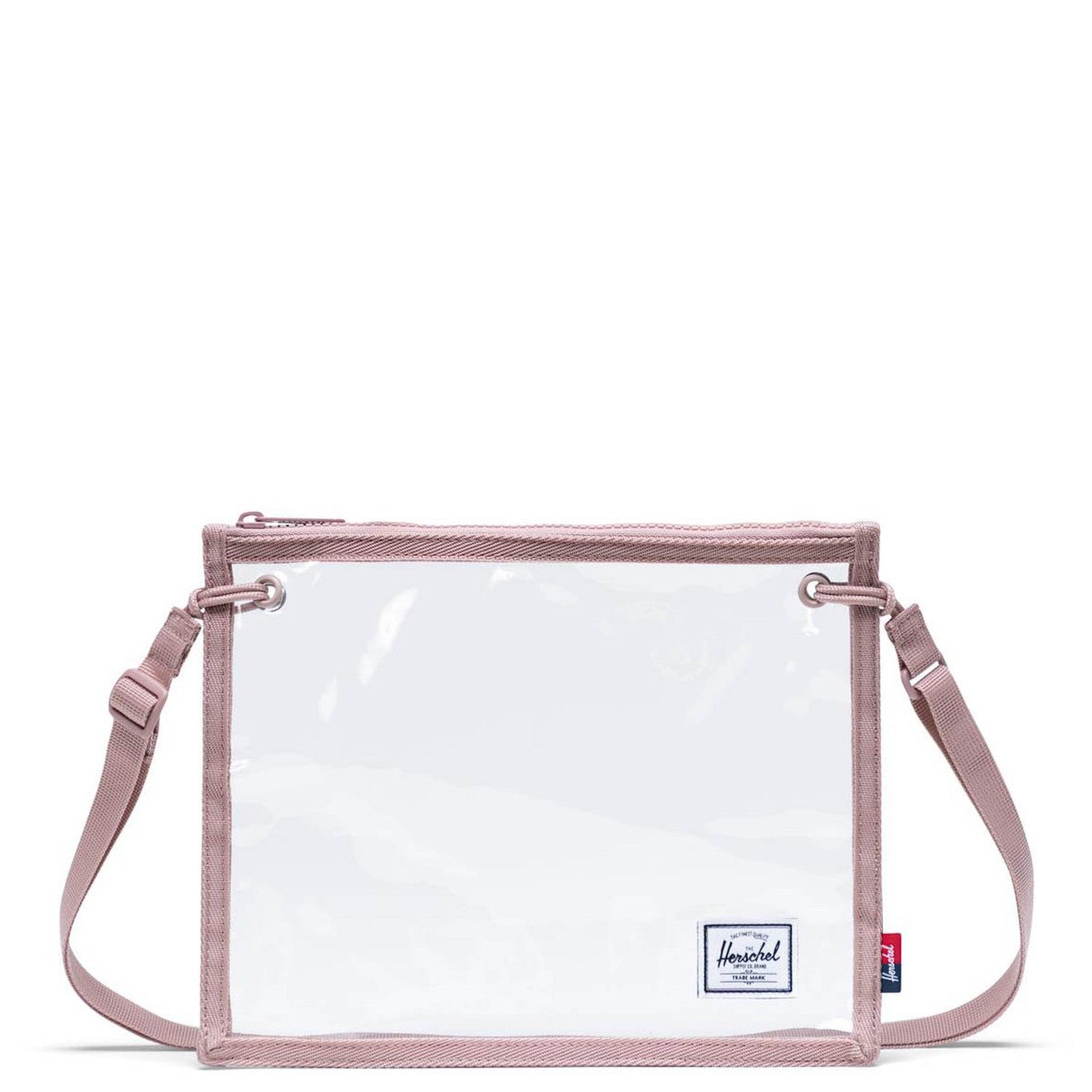 The Herschel Alder shoulder bag in the color ash rose clear stands out with its transparent design featuring a colored trim, combining a fashionable accent with practical clarity.