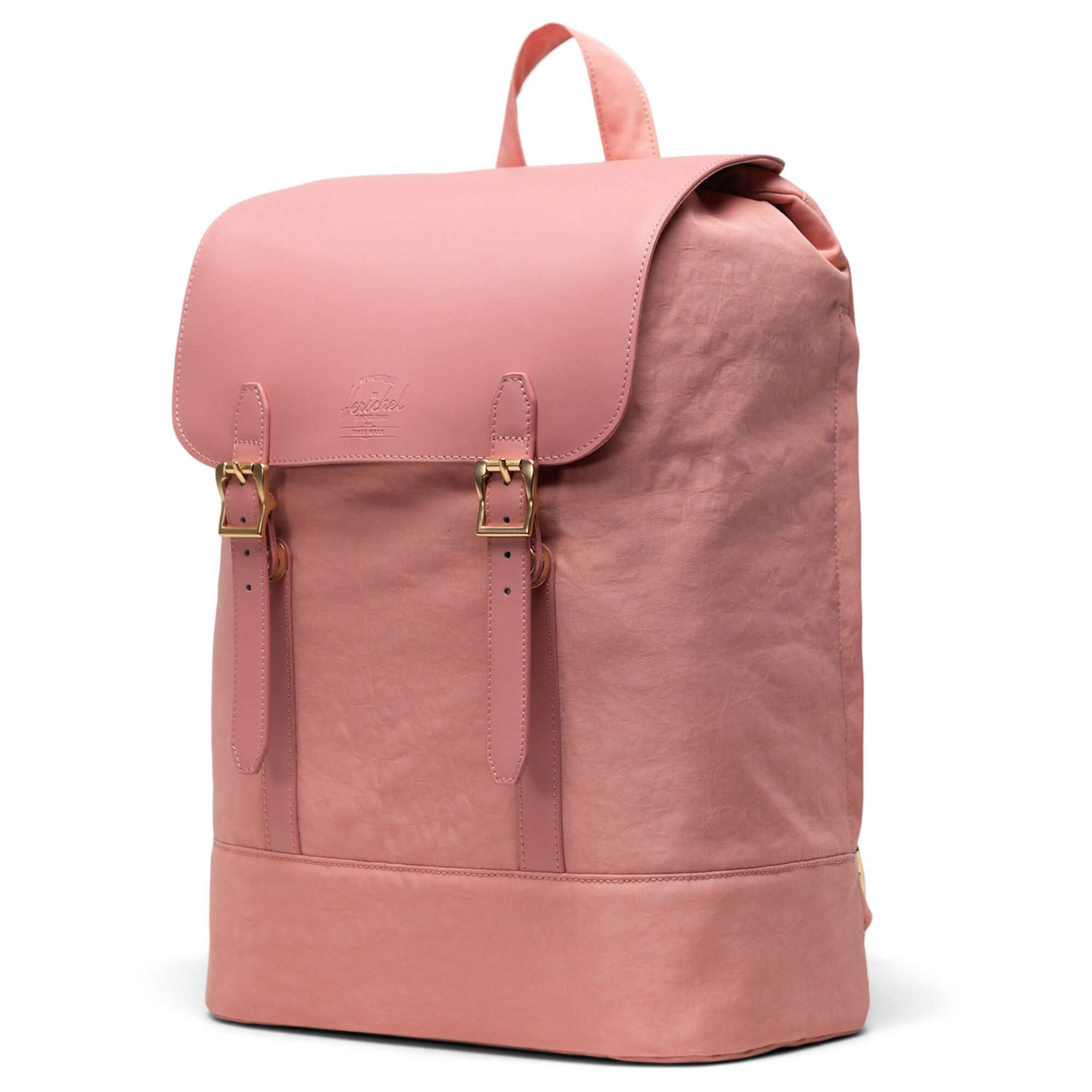 The Herschel Orion Retreat backpack in Rosette combines classic design with practical everyday usability. With its compact size and the combination of genuine leather and soft nylon, it is a versatile companion for leisure, city, and university.