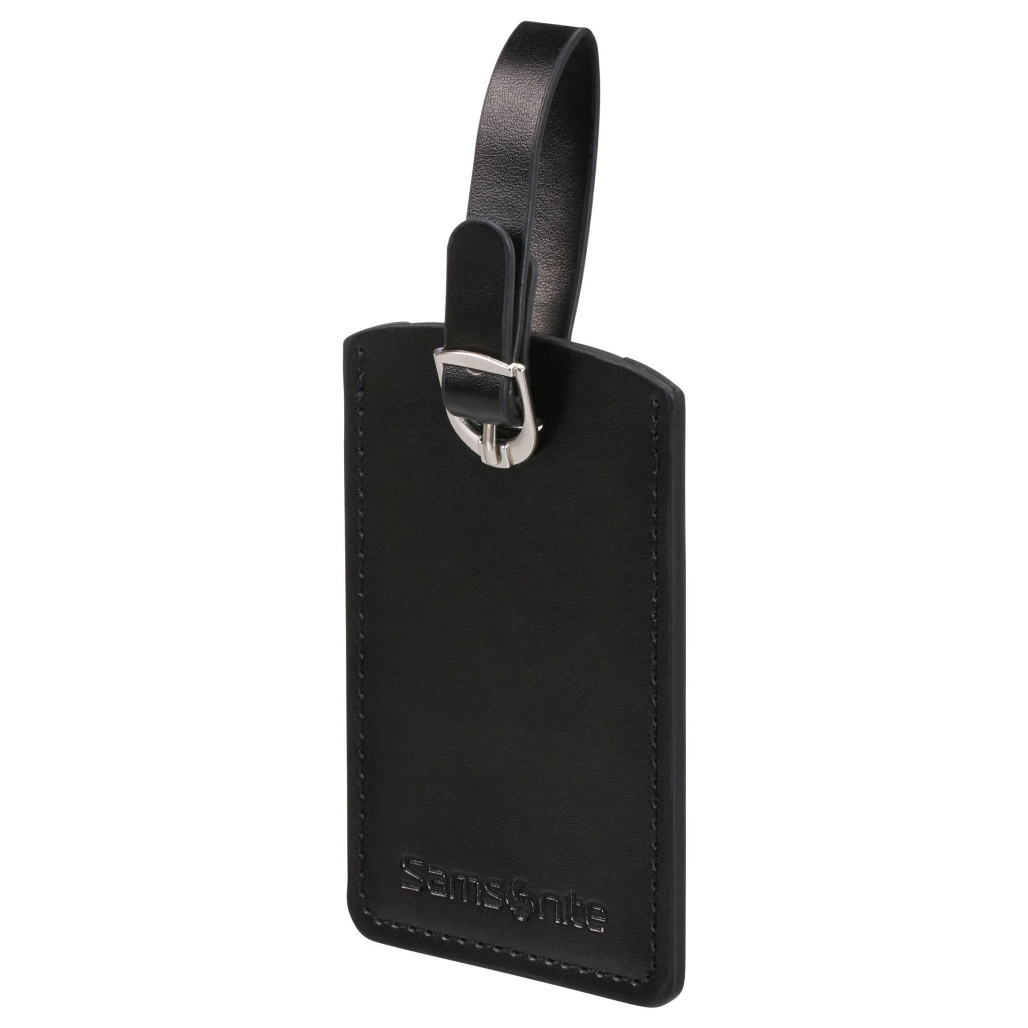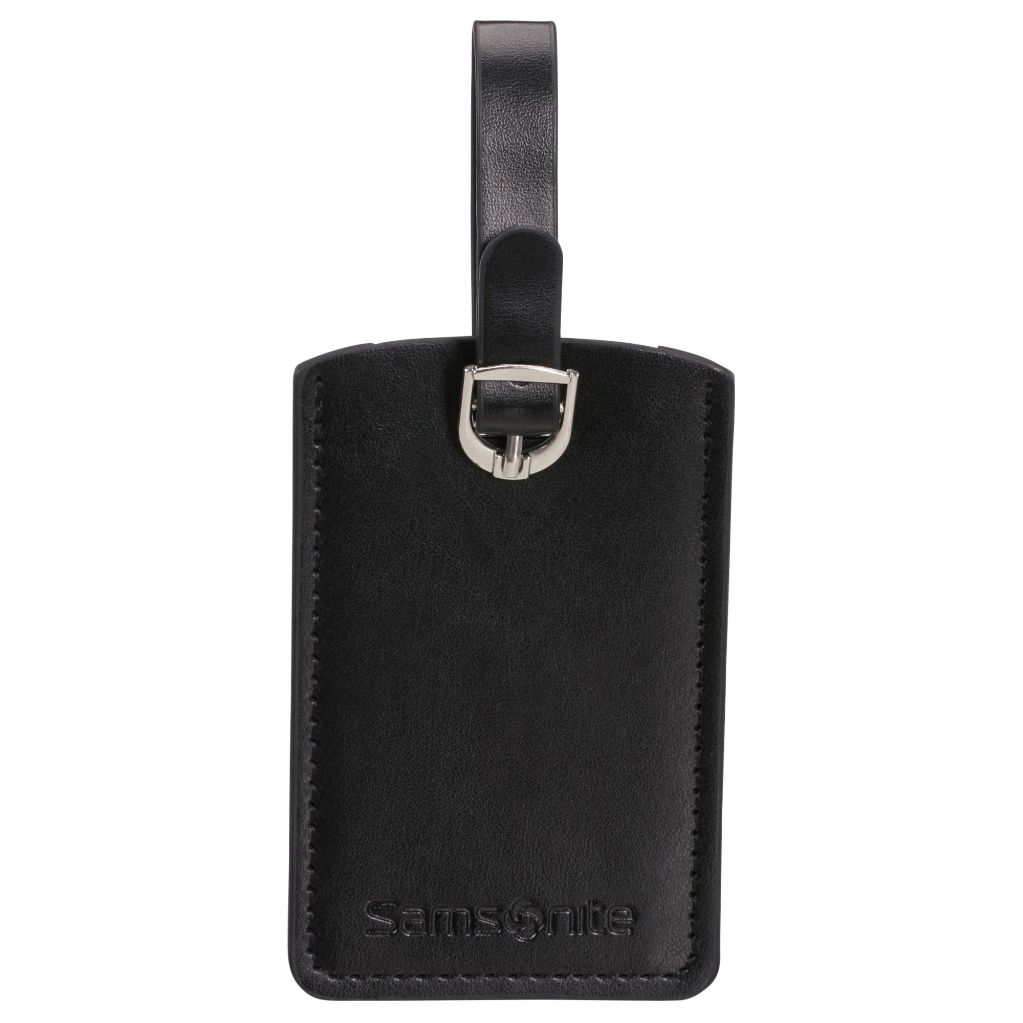 The black Samsonite luggage tag stylishly complements your travel gear and ensures secure and clear identification.
