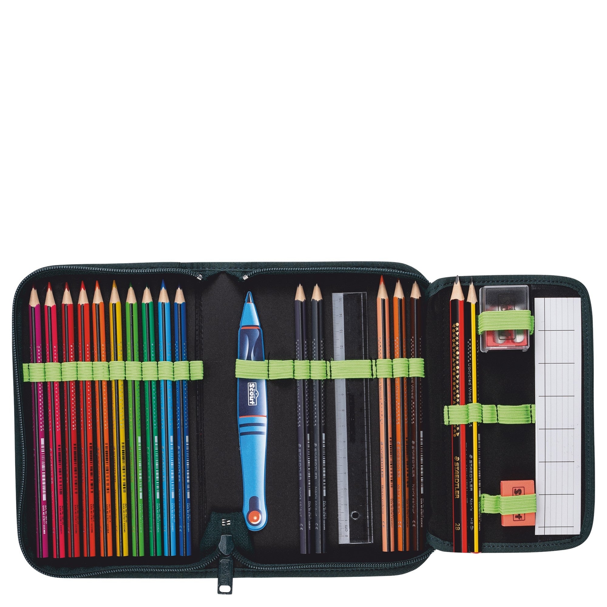 - 4-piece set – consisting of school backpack, gym bag, pencil case with Staedtler pens, and pencil pouch