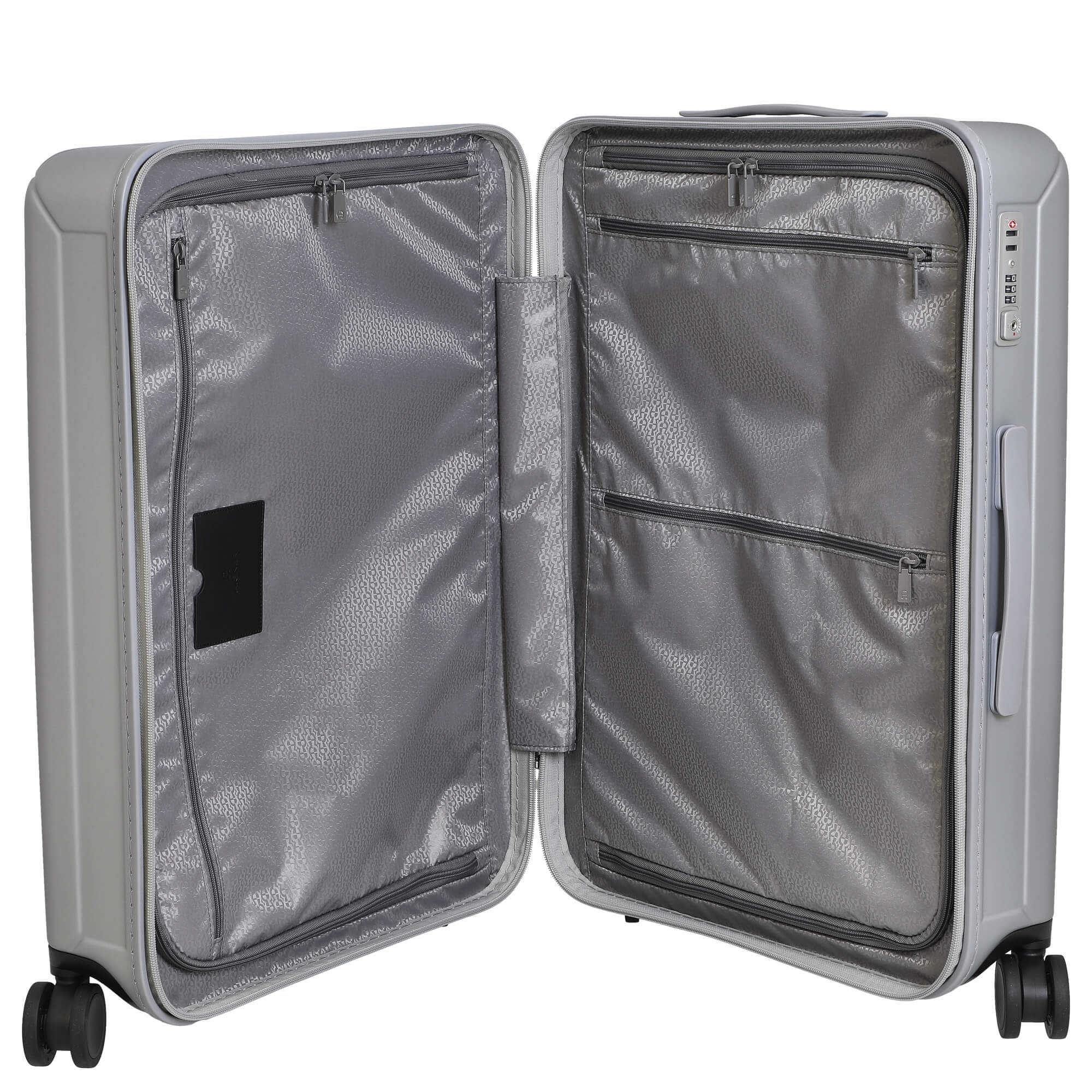 Der silberfarbene Trolley eignet sich besonders für anspruchsvolle Reisende, die Wert auf Funktionalität und langlebige Materialien legen.