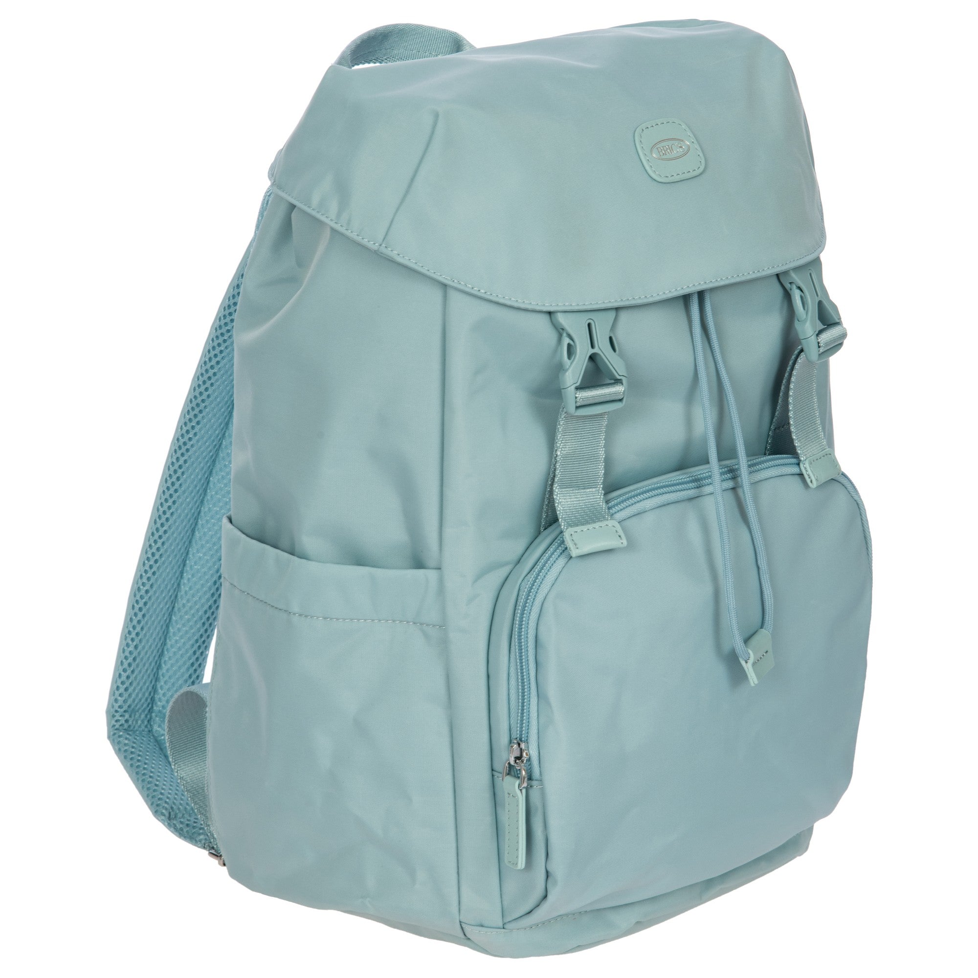 Ein praktischer Reiserucksack aus der Positano-Kollektion von Brics, der in einem ansprechenden hellblauen Farbton für unterwegs überzeugt.