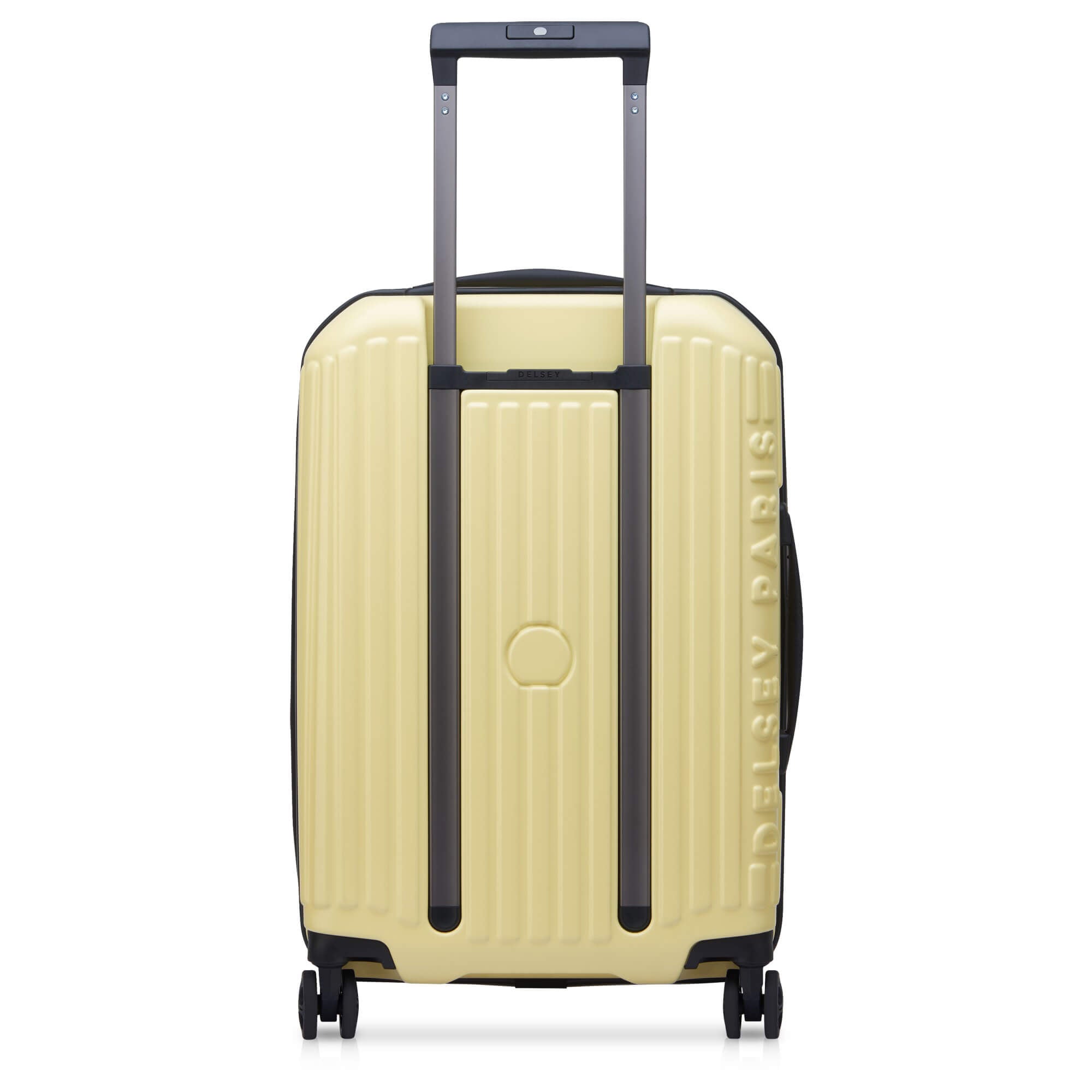 Der Kabinentrolley von Delsey Paris in blassgelb bietet mit seinem funktionalen Design zuverlässigen Schutz und Komfort auf Reisen.