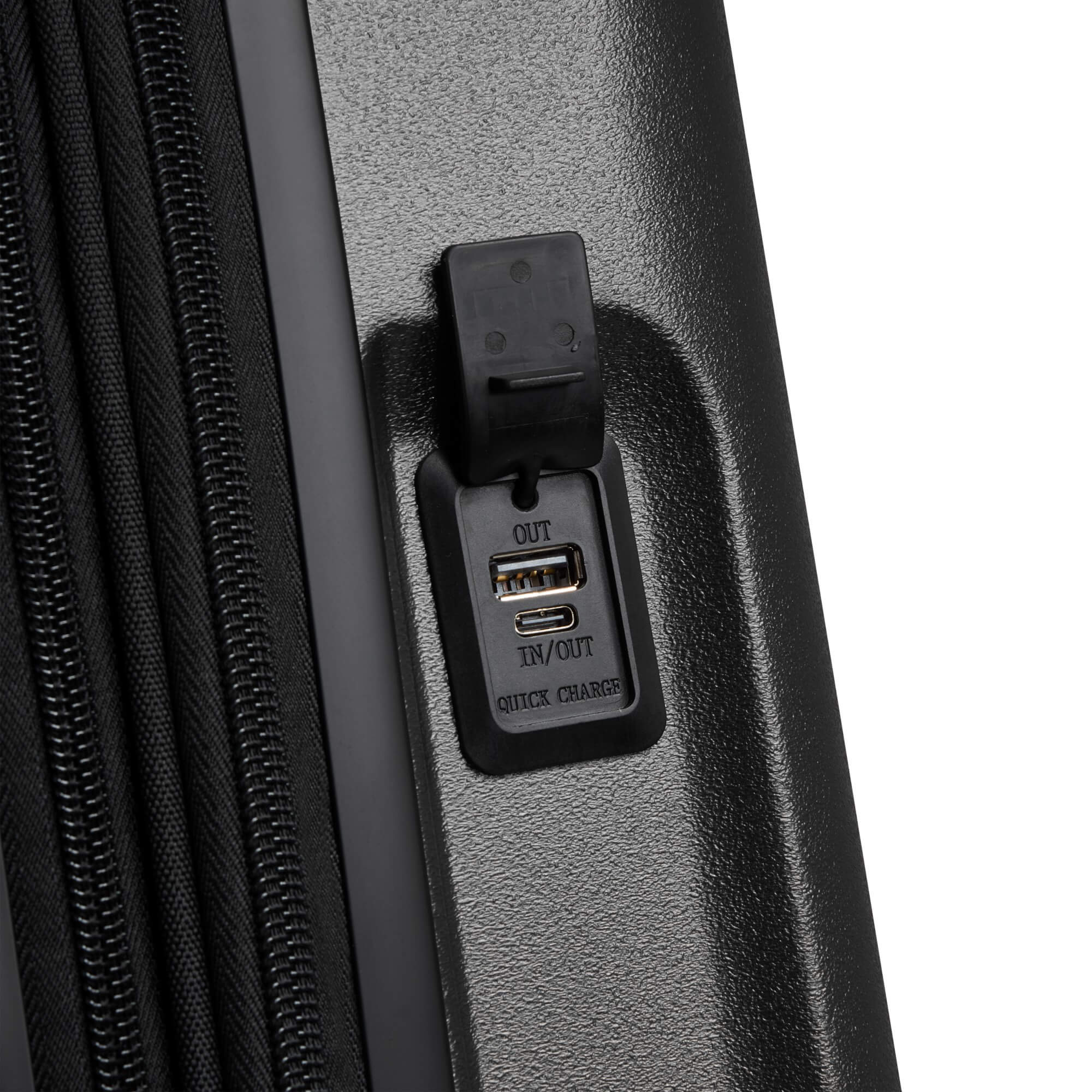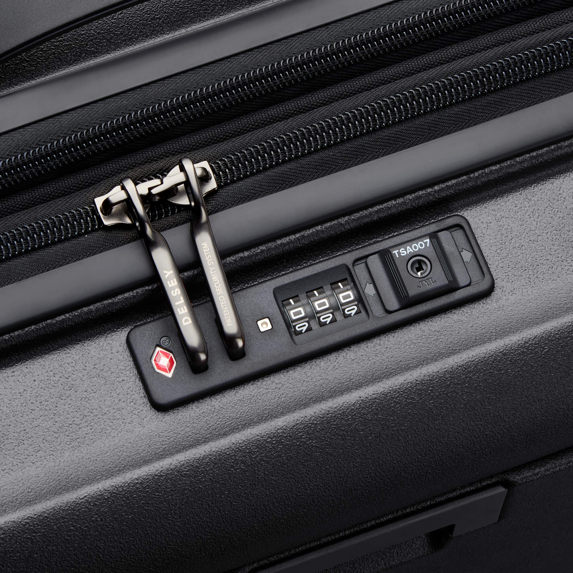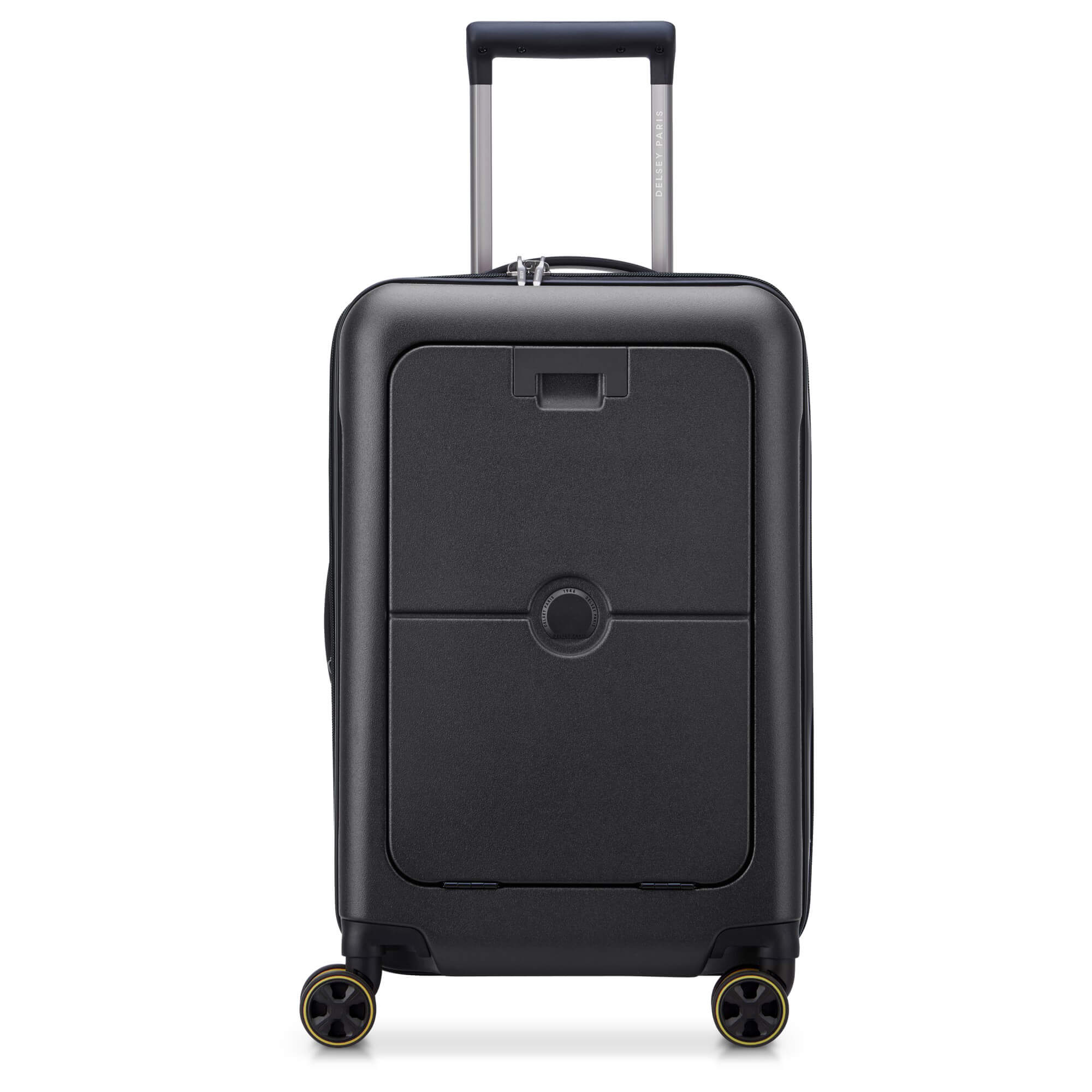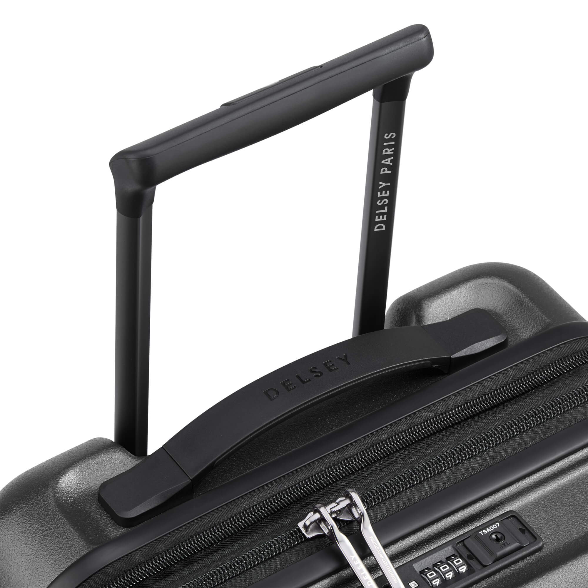 Der schwarze Kabinentrolley von Delsey Paris vereint Technik und Funktionalität und ist ideal für Kurzreisen sowie Handgepäck geeignet.