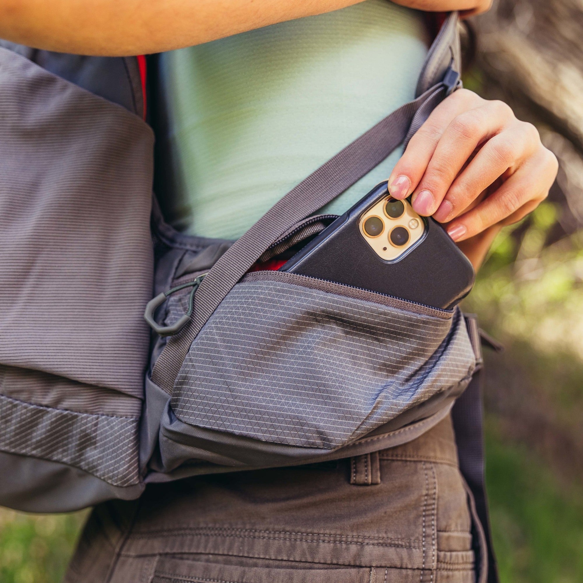 - Körpernaher Hüftgurt mit doppeltem Reißverschluss – bietet sicheren Halt und zusätzlichen Stauraum