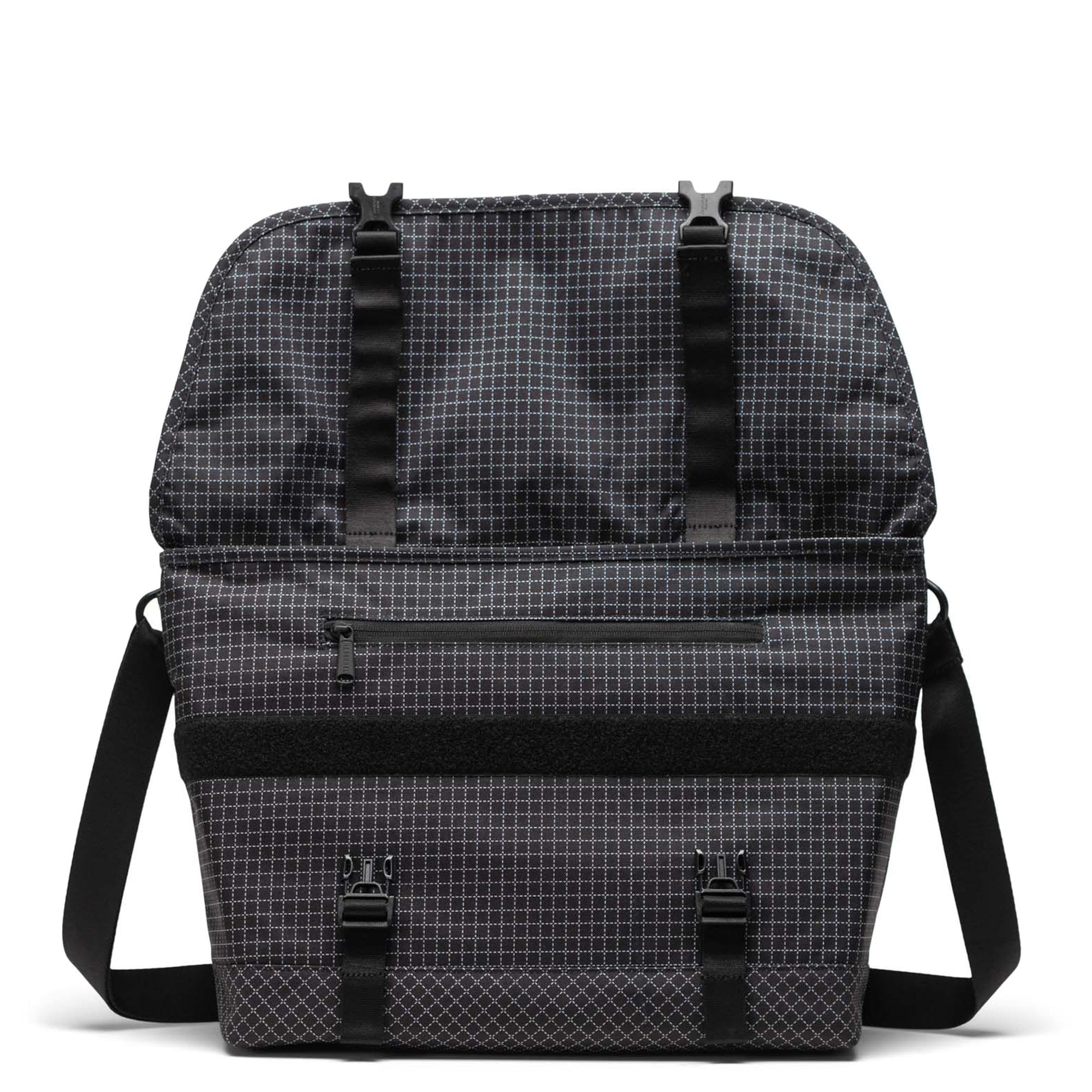 Ein modischer Begleiter für stilbewusste Frauen, die Wert auf Nachhaltigkeit und Funktionalität legen. Die Herschel Cove Messenger Umhängetasche präsentiert sich in einem eleganten grid-black Design mit einem feinen, tonalen Karomuster, das urbanen Chic mit Alltagstauglichkeit verbindet.