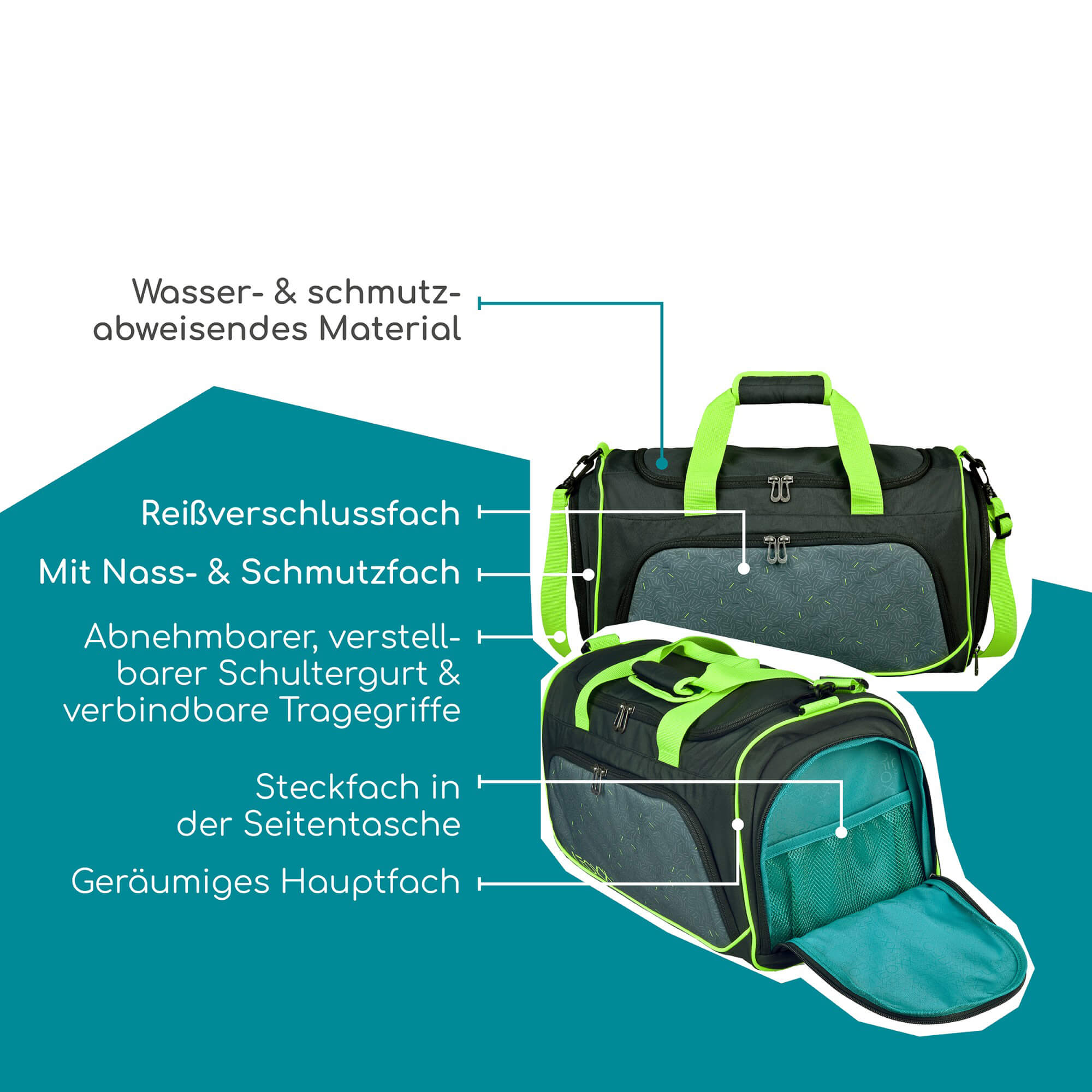 Diese Sporttasche in moderner Farbgestaltung ist vielseitig einsetzbar und passt sowohl zum Sportunterricht als auch zum Training.