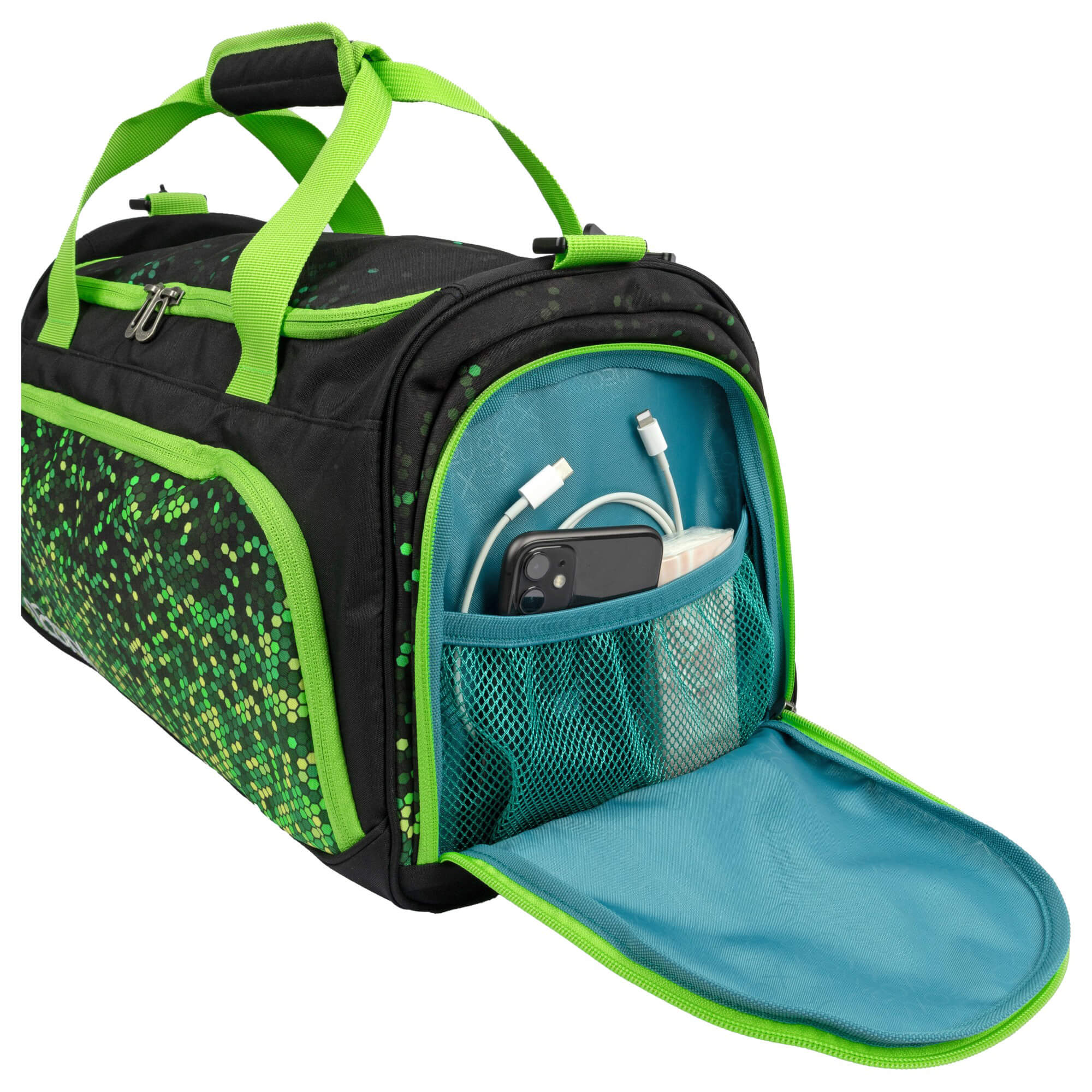 Diese Sporttasche in frischem Grün ist ein vielseitiger Begleiter für das Training, den Sportunterricht oder den Freizeitbereich.