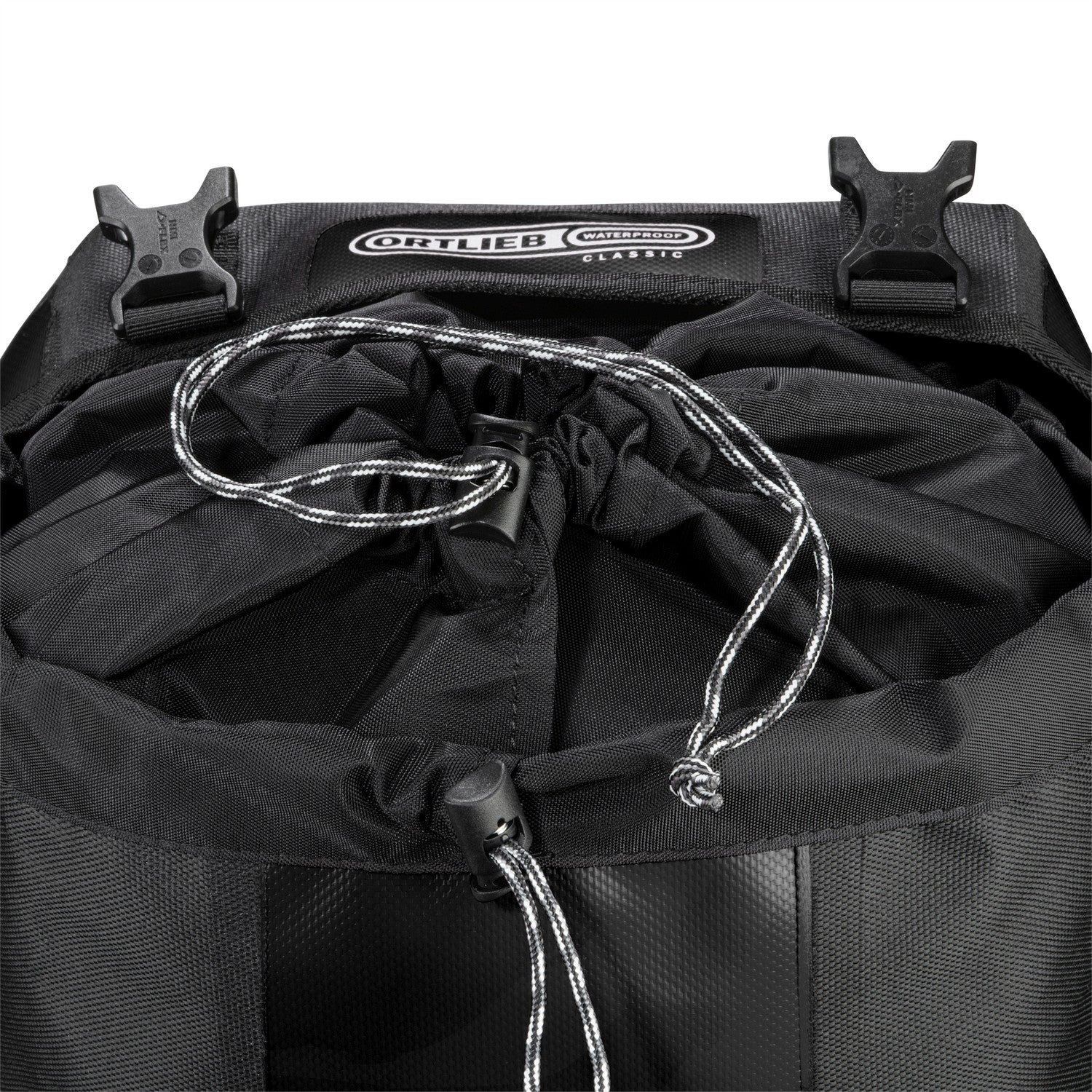 Die schwarze Ortlieb Fahrradtasche ist funktional gestaltet und durch ihre symmetrische Form sowohl rechts als auch links am Rad einsetzbar – ideal für den täglichen Einsatz oder als Ergänzung für Kinder- und Jugendräder.