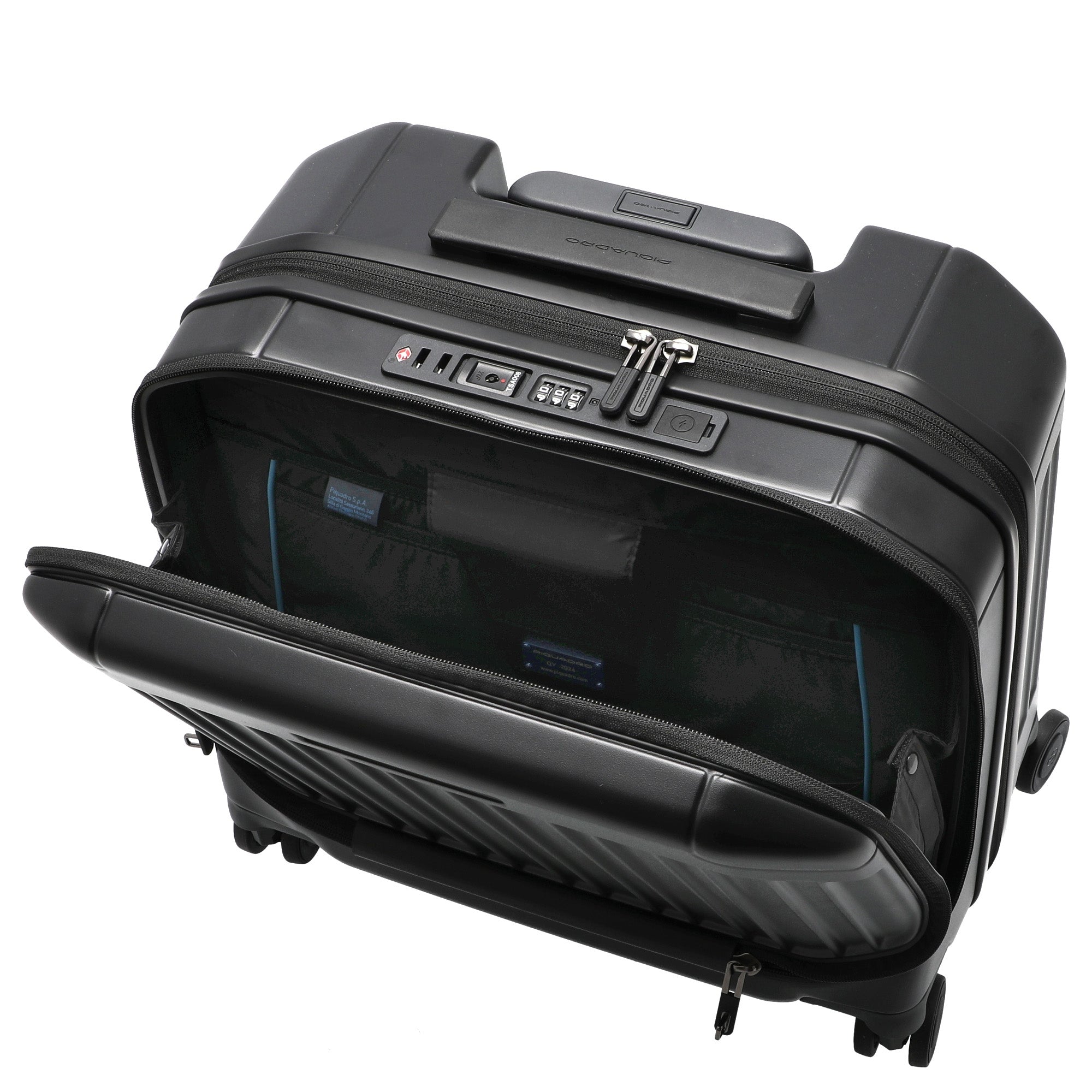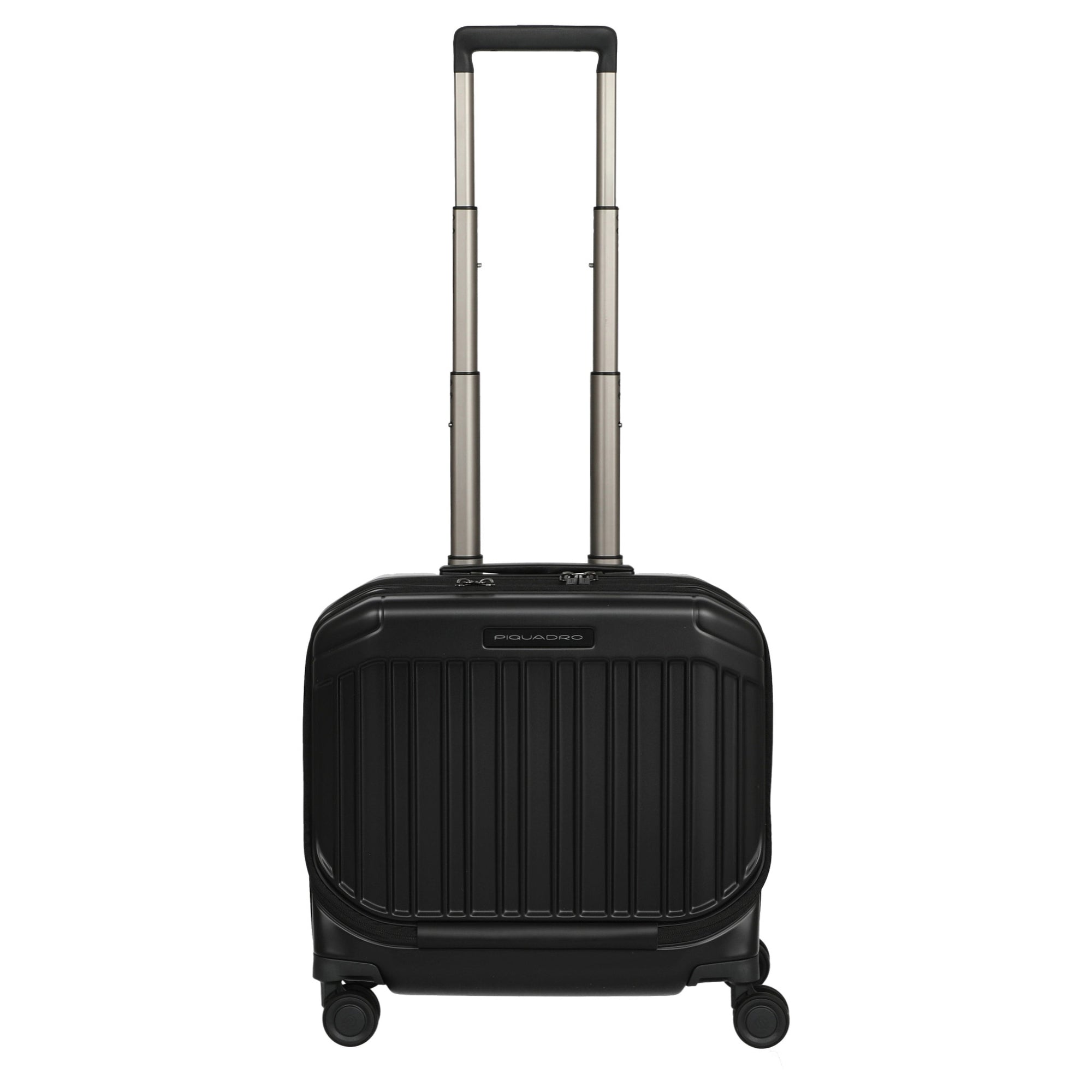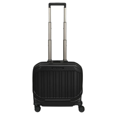 Ein funktionaler Businesstrolley von Piquadro in matt schwarzer Ausführung, der speziell für Kurzreisen und als Handgepäck konzipiert ist.