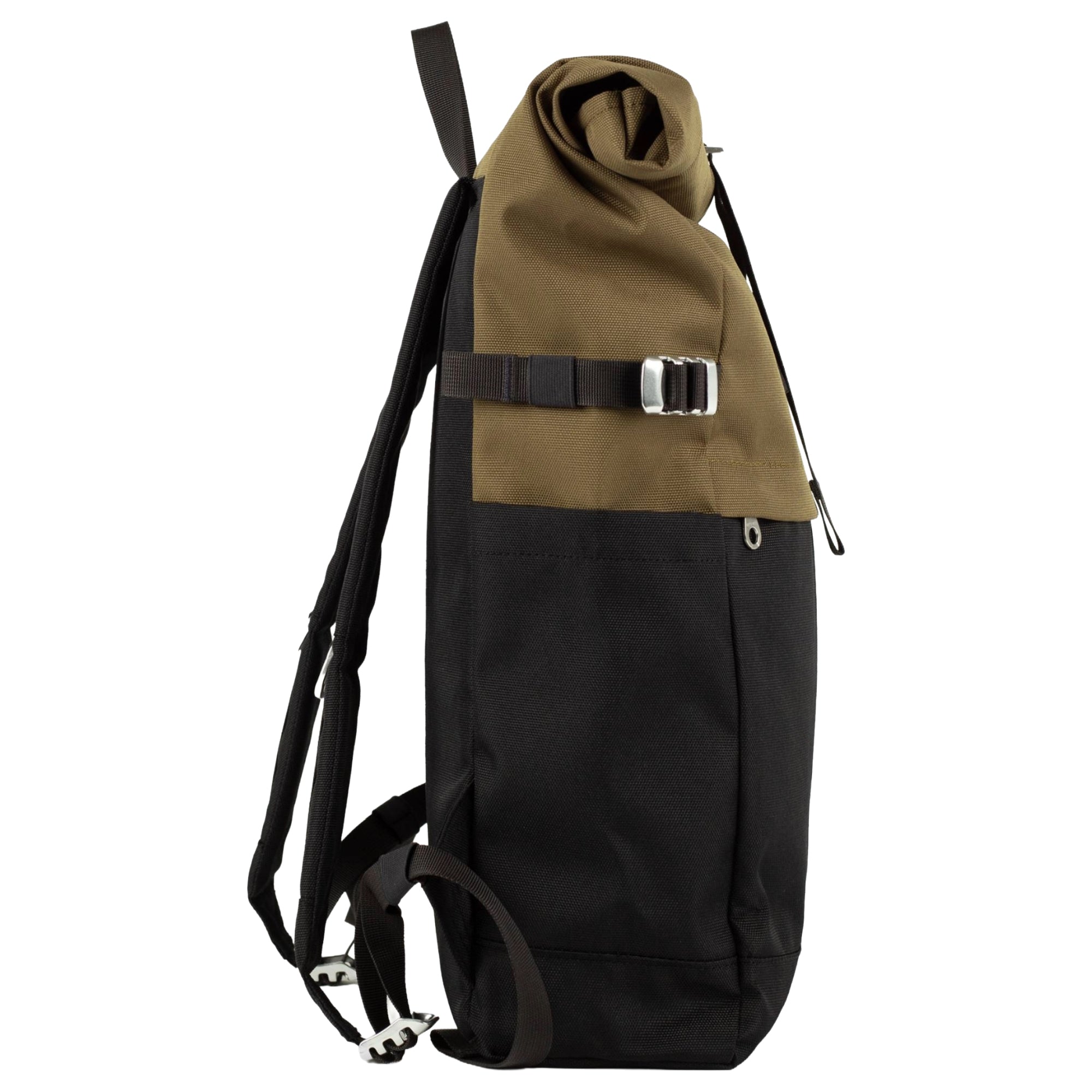 - Rolltop-Verschluss mit Steckverschluss – ermöglicht flexible Anpassung des Volumens und sicheren Verschluss.