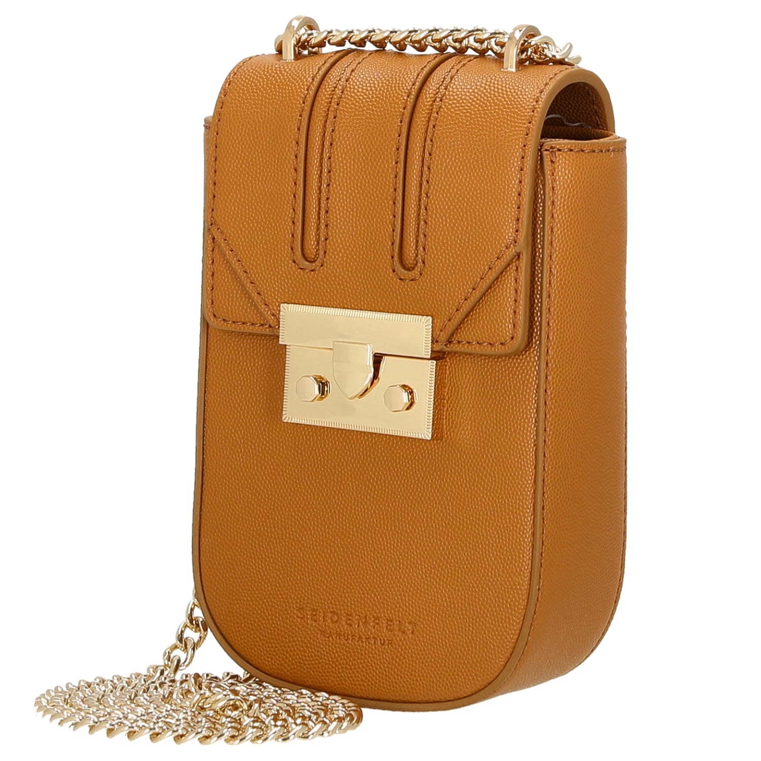 Die Seidenfelt Roros Mobile Umhängetasche in warmem Honey ist ein stilvoller Begleiter für modebewusste Frauen, die Wert auf elegantes Design und praktische Handhabung legen.
