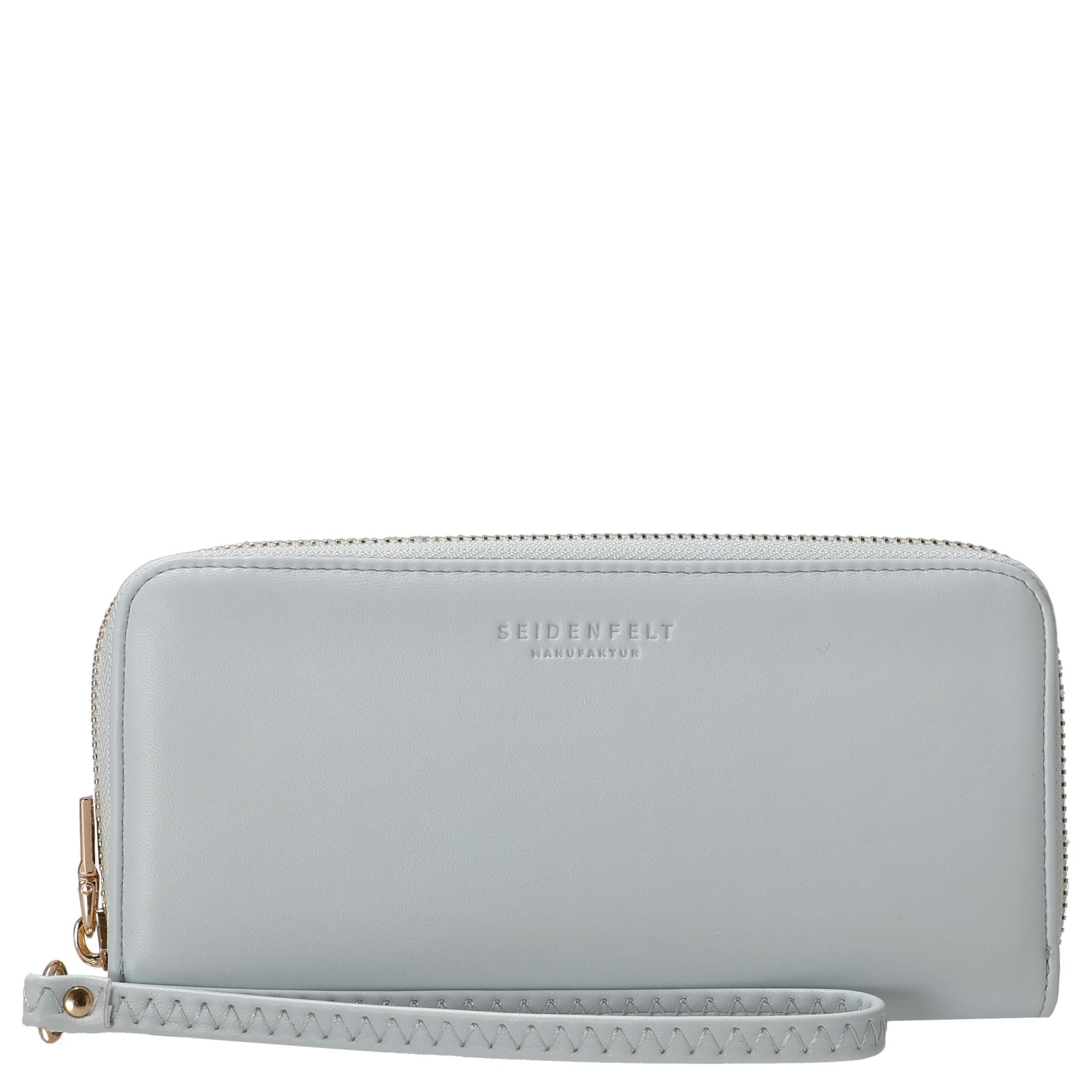 Die Smilla Damengeldbörse von Seidenfelt besticht durch ihr elegantes Design in der Farbe sea salt blue und bietet dabei viel Platz auf kompakten 19 cm Länge.