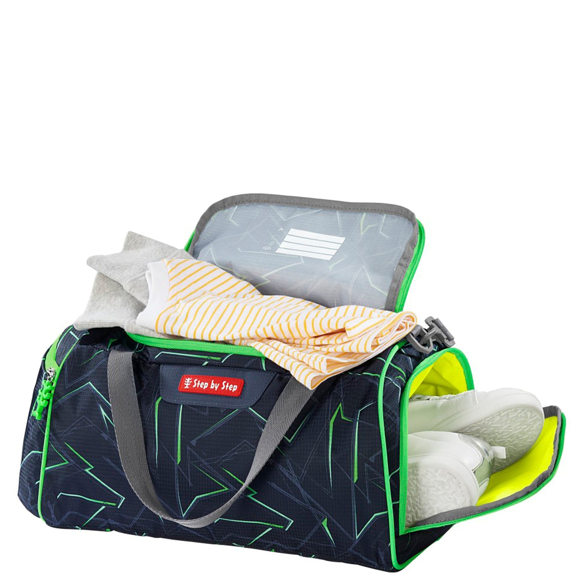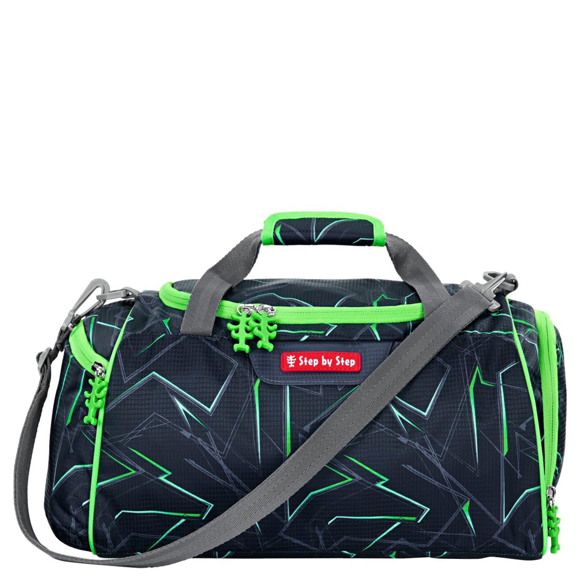 Diese Sporttasche von Step by Step bietet ausreichend Platz für alle Sportutensilien und überzeugt durch ihr modernes, kindgerechtes Design in Schwarz mit grünen Akzenten.