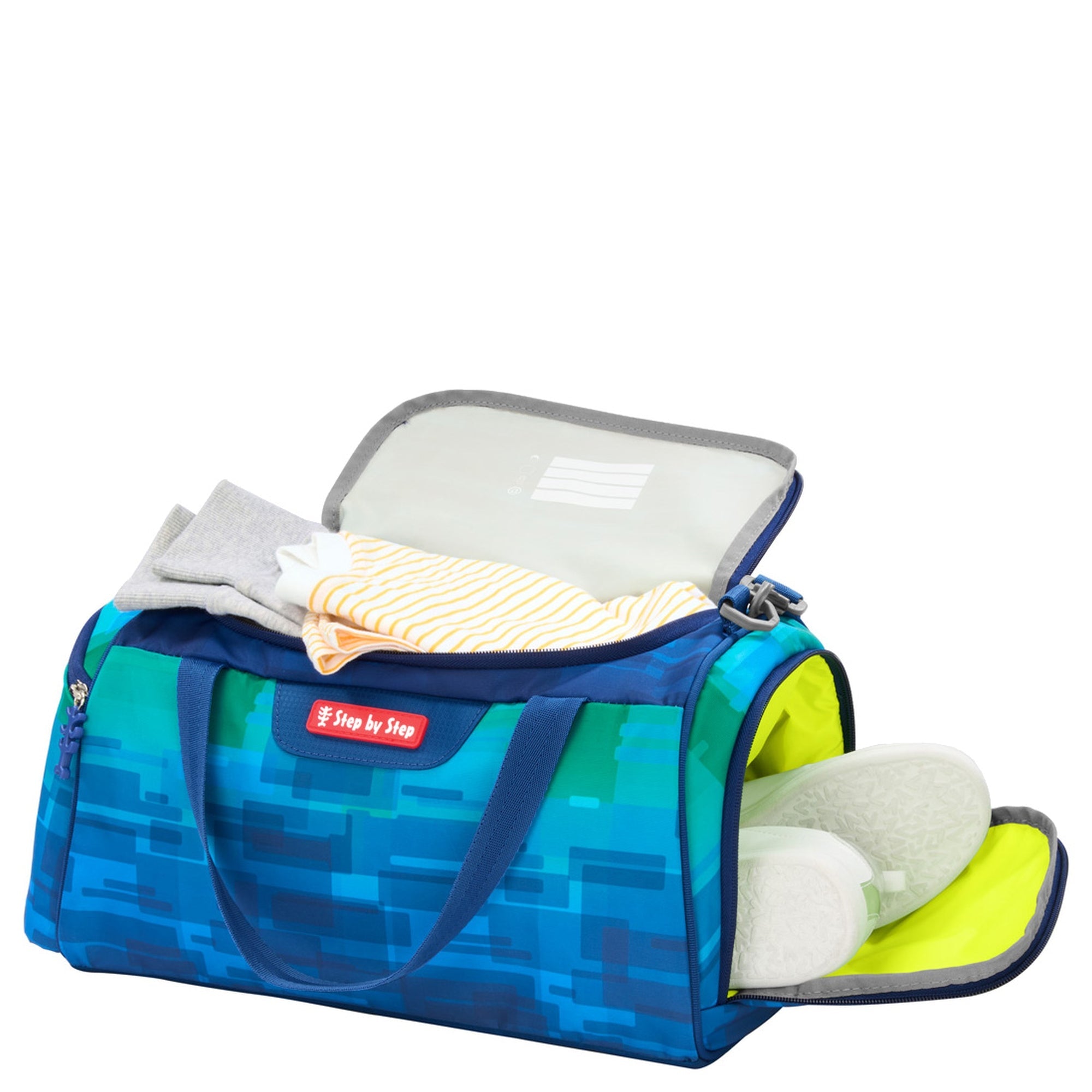 Praktische Sporttasche von Step by Step in frischem Blau-Grün, ideal für Schule und Freizeit.