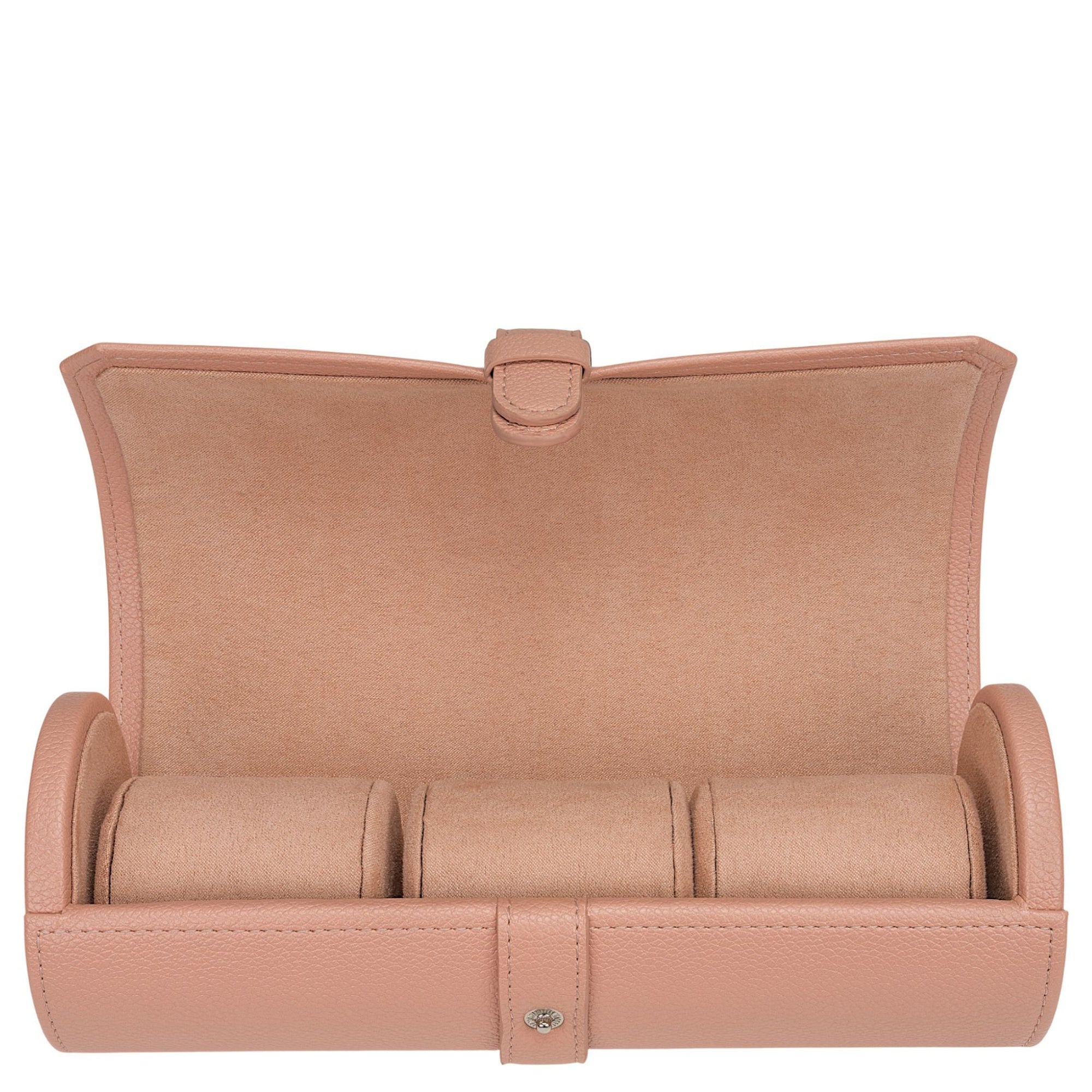 Ein elegantes Uhrenetui aus der Kollektion Marvella, das stilvolle Aufbewahrung und praktischen Schutz vereint. Dieses kompakte Etui in rosé ist ideal für die sichere Reise und Aufbewahrung von bis zu 3 Uhren.