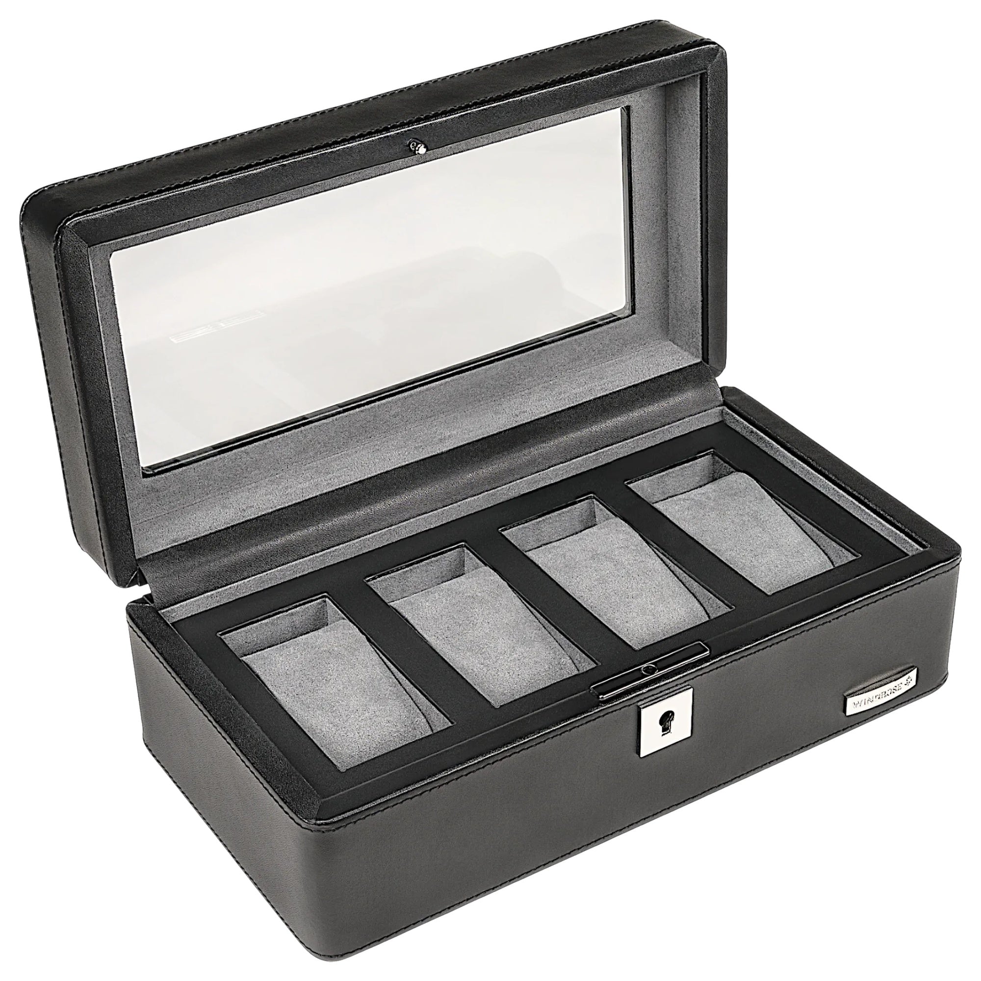 - Kapazität für 4 Uhren – bietet ausreichend Platz, auch für breite Uhren mit bis zu 40 mm Breite