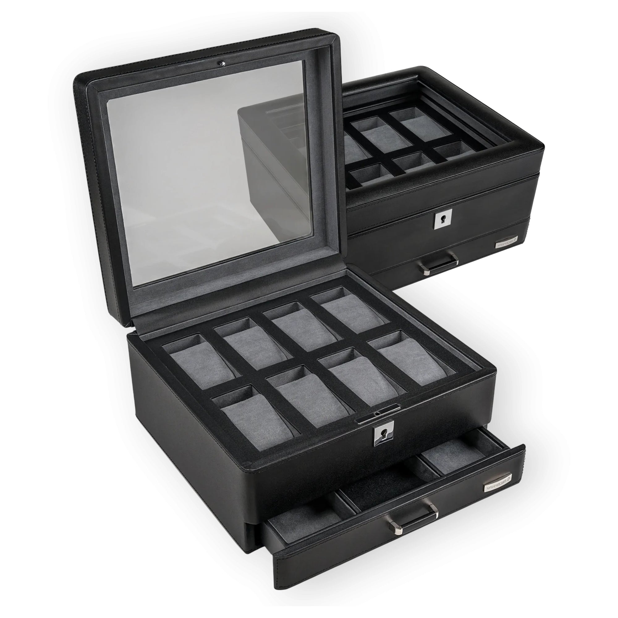 Diese Uhrenbox vereint zeitlose Eleganz mit durchdachter Funktionalität und ist ein stilvoller Begleiter für Zuhause oder unterwegs.